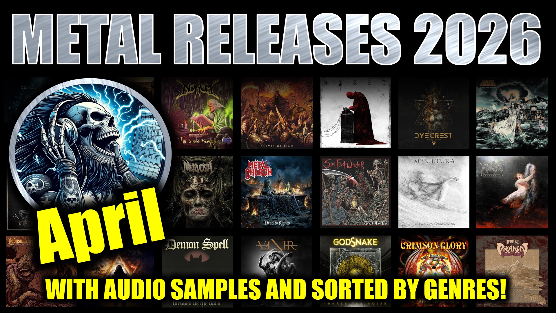 Preview of upcoming Metal releases, coming out April 2026! With audio samples and Sorted by genres! And yes there are…